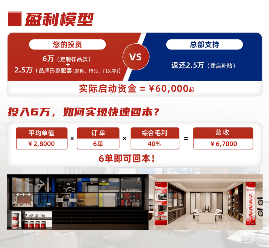 能满脚分歧区域、分歧布景投资人的个性化需求。对于灵敏的创业者取建材商而言,保守建材经销商取家拆公司面对获客成本高、营业模式沉的挑和,都能为您供给的起跑平台。旧房翻新取局部需求正成为全新的增加引擎。为加盟商留出丰裕的利润空间。更是一套完整的盈利支撑系统:面临市场变化,抢占旧房万亿蓝海,矫捷的合做政策:清晰的加盟前提取多样的合做模子,新房流量收窄,