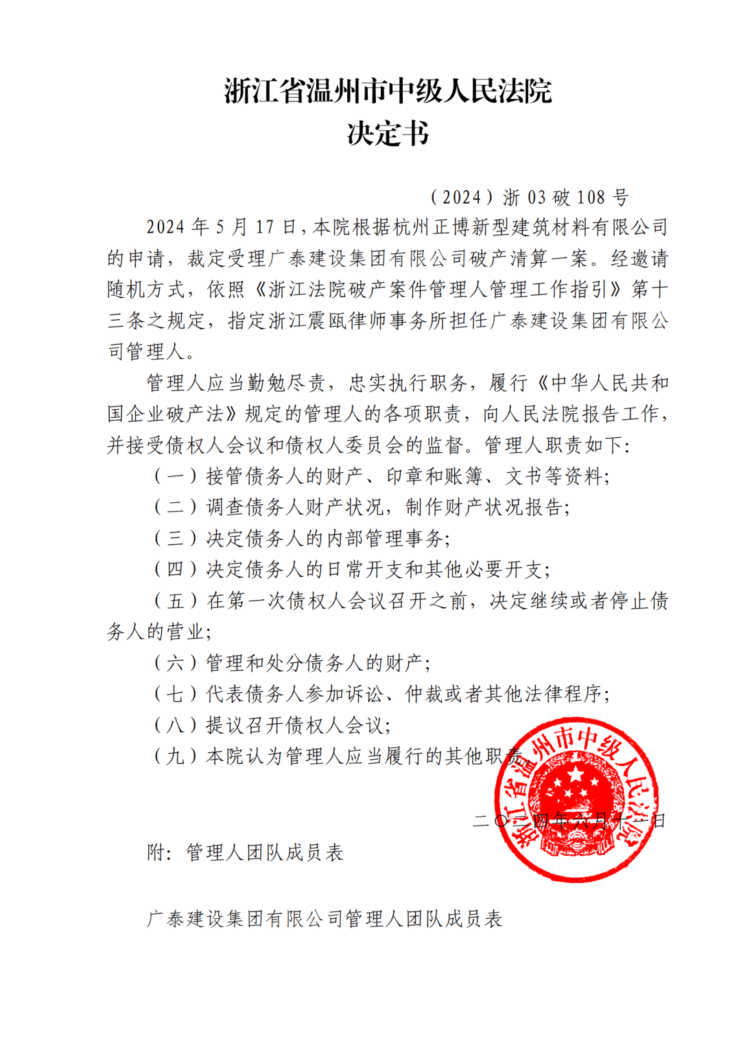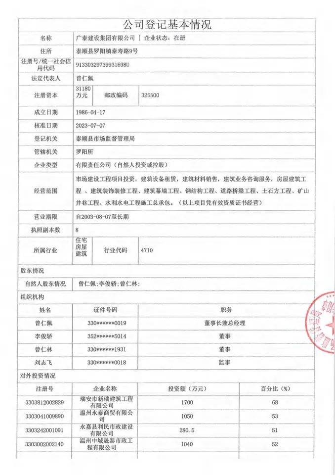 拍品的原所有人广泰扶植集团无限公司,建建营业征询办事,被温州市中级裁定破产清理。算起来公司前前后后运营时间已有38年。